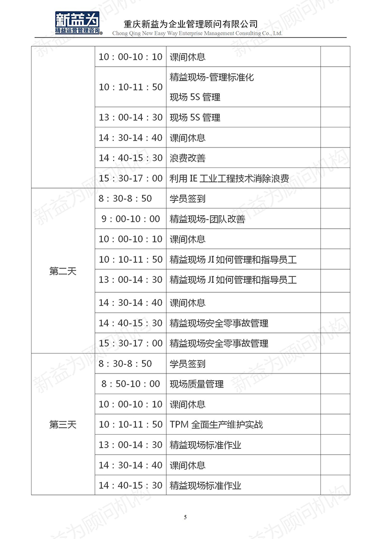 重庆2023.05 精益现场管理实践训练营